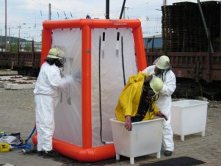 Technische Hilfeleistung größeren Umfangs bei Gefahrgutunfällen in Betrieben, auf der Straße und im Haushalt. |
